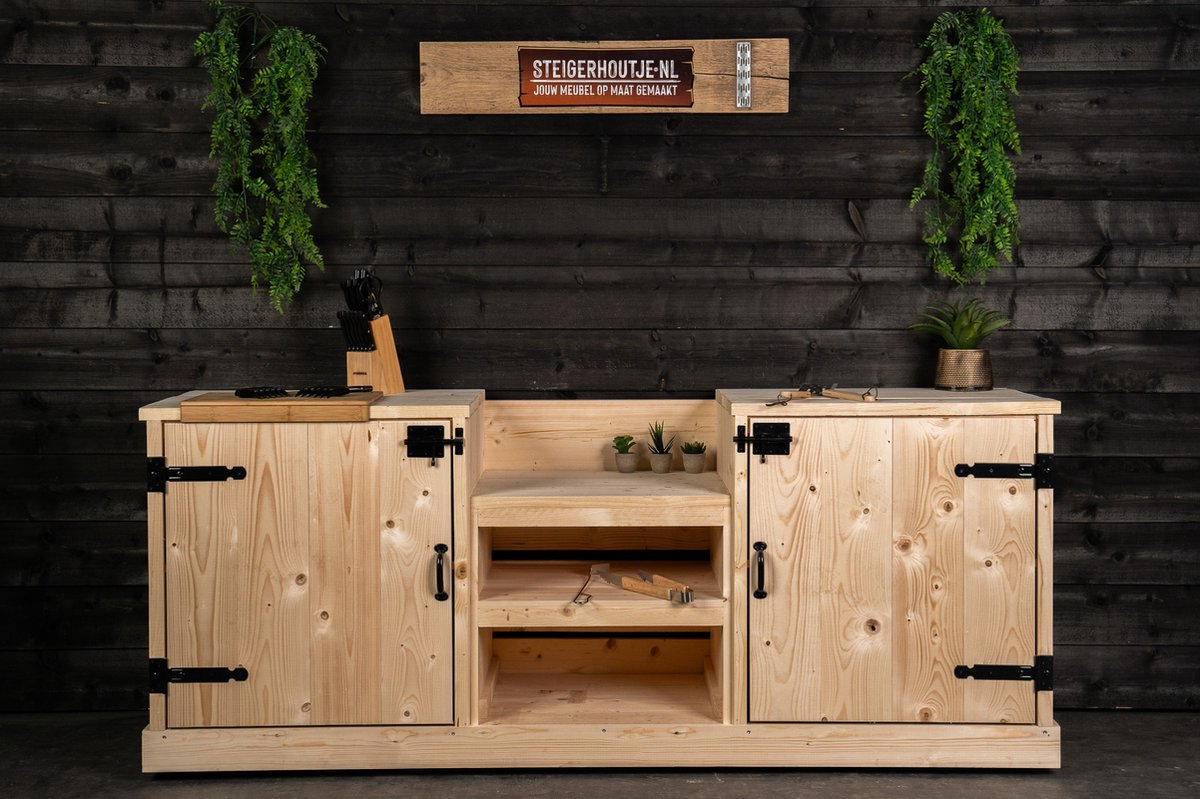 - Stijlvol en duurzaam: Het gebruik van kwalitatief hout en afwerkingsopties zorgen dat jouw buitenkeuken er lang mooi uit blijft zien