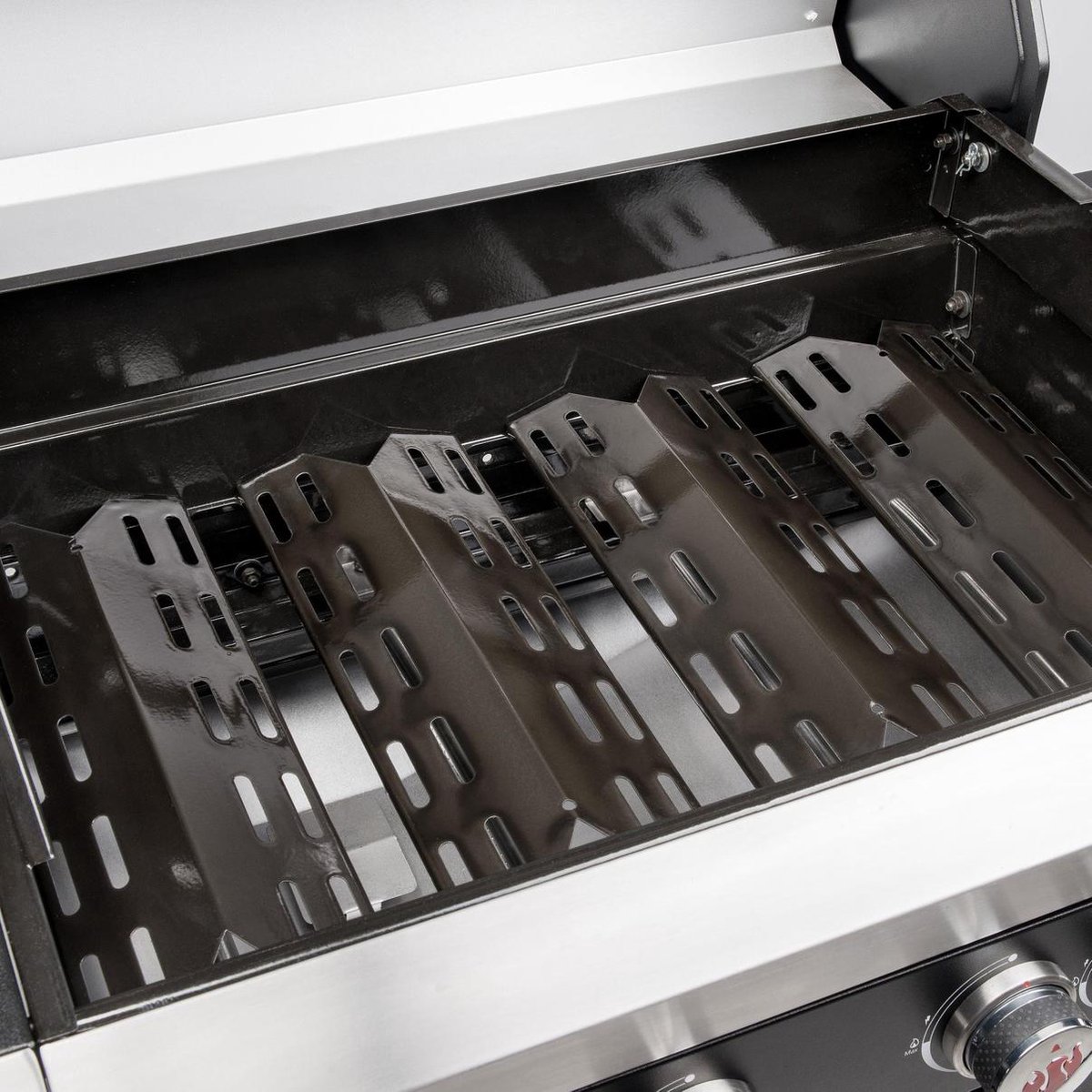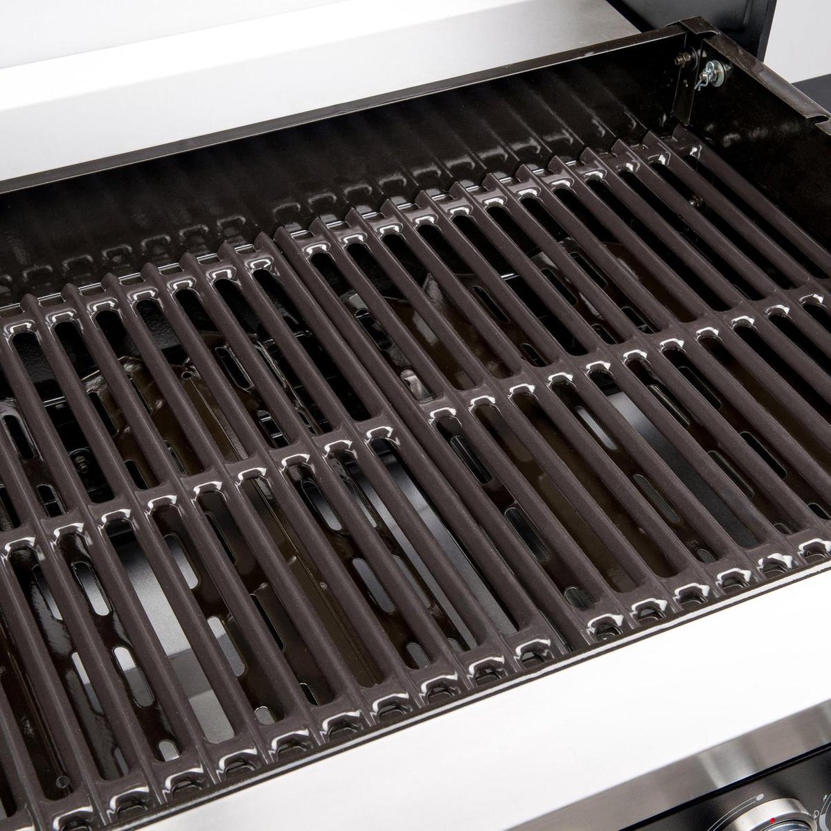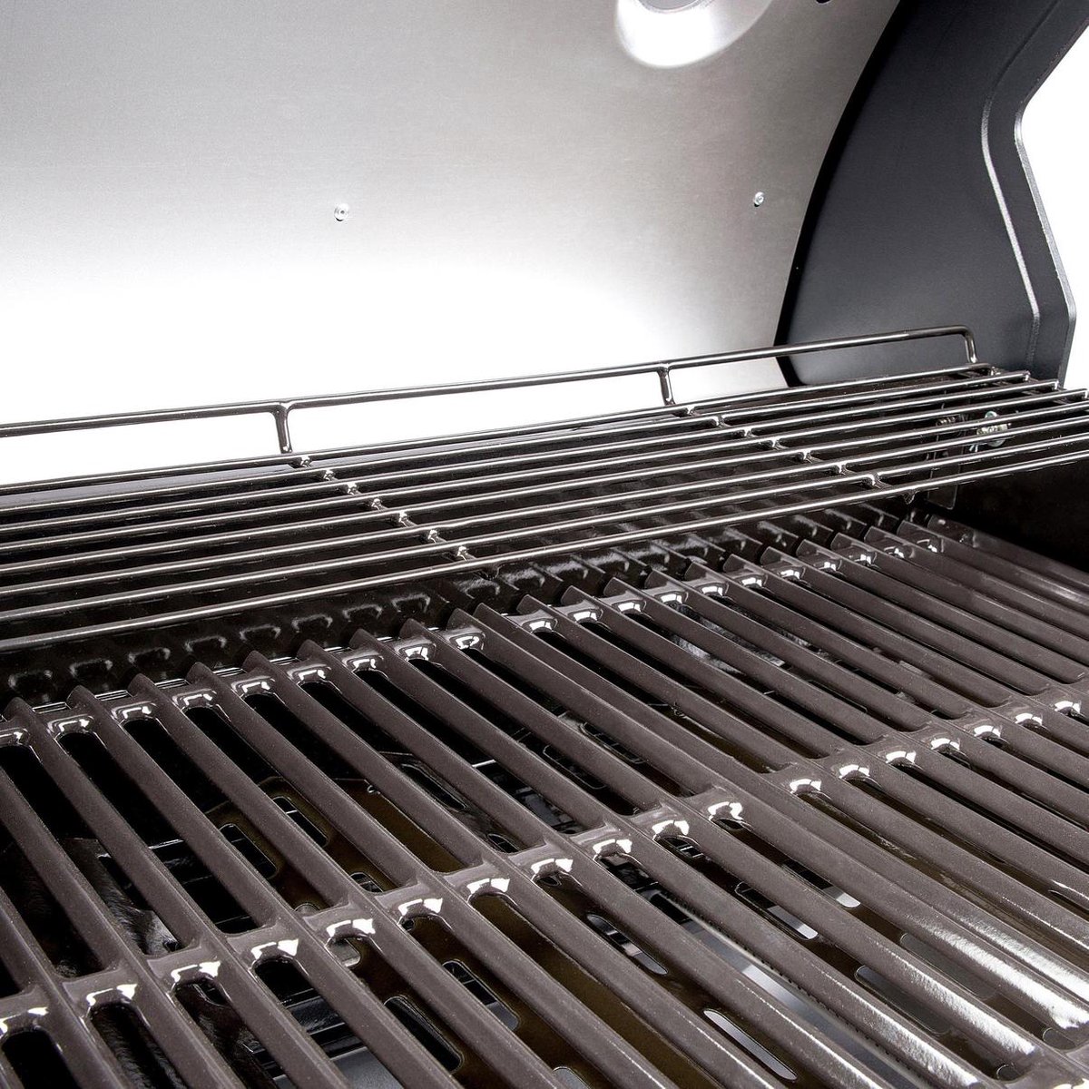 - Gegaldeerde onderdelen zoals grillroosters, branderafdekkingen en het warmhoudrooster garanderen een lange levensduur en eenvoudige reiniging. Het geemailleerde oppervlak voorkomt aanbakken en zorgt dat je grill snel schoon is.