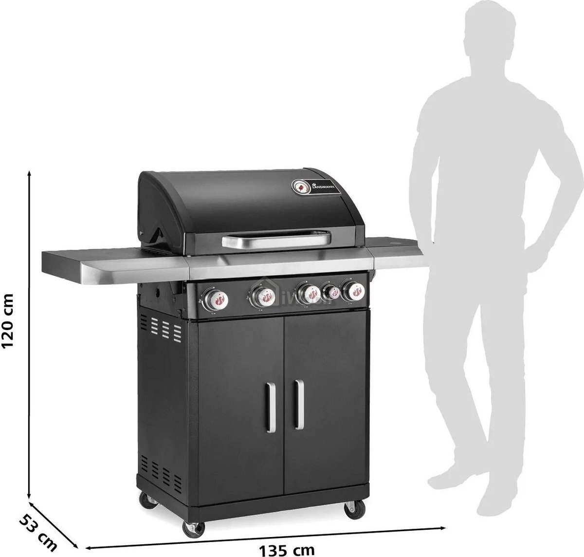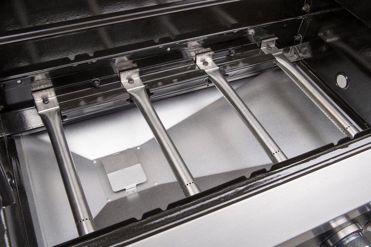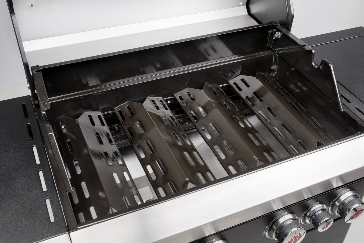 - Vier krachtige RVS-branders met traploze instelling zorgen voor een gelijkmatige warmteverdeling en perfecte controle over elke kooksessie. De geïntegreerde thermometer in de deksel houdt je temperatuur altijd in de gaten, zodat je precies weet wanneer je gerechten op de juiste temperatuur worden bereid.